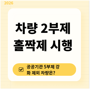 | 대상 차량 | 공공기관 소유 및 직원 출퇴근 승용차 전체 | 전기차 등 친환경차 제외 여부 확인 필요 |